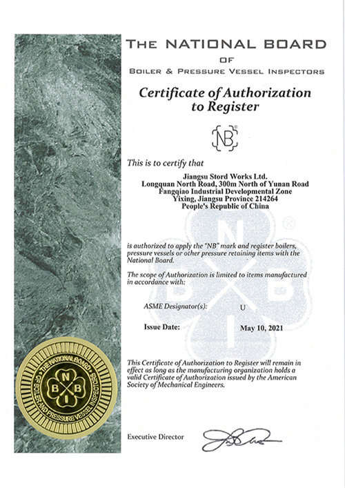 2021-06-21我公司收到美國ASME頒發(fā)的U鋼印授權和NB認證證書